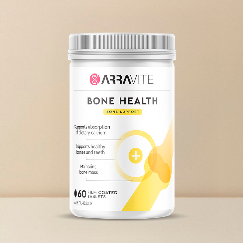 Arravite Bone Health is a daily nutritional supplement crafted to help maintain strong bones and support balanced calcium levels. It features a thoughtfully combined blend of calcium hydroxyapatite, vitamin D3, vitamin K2, magnesium, and manganese—nutrients that play a role in maintaining bone and dental health.